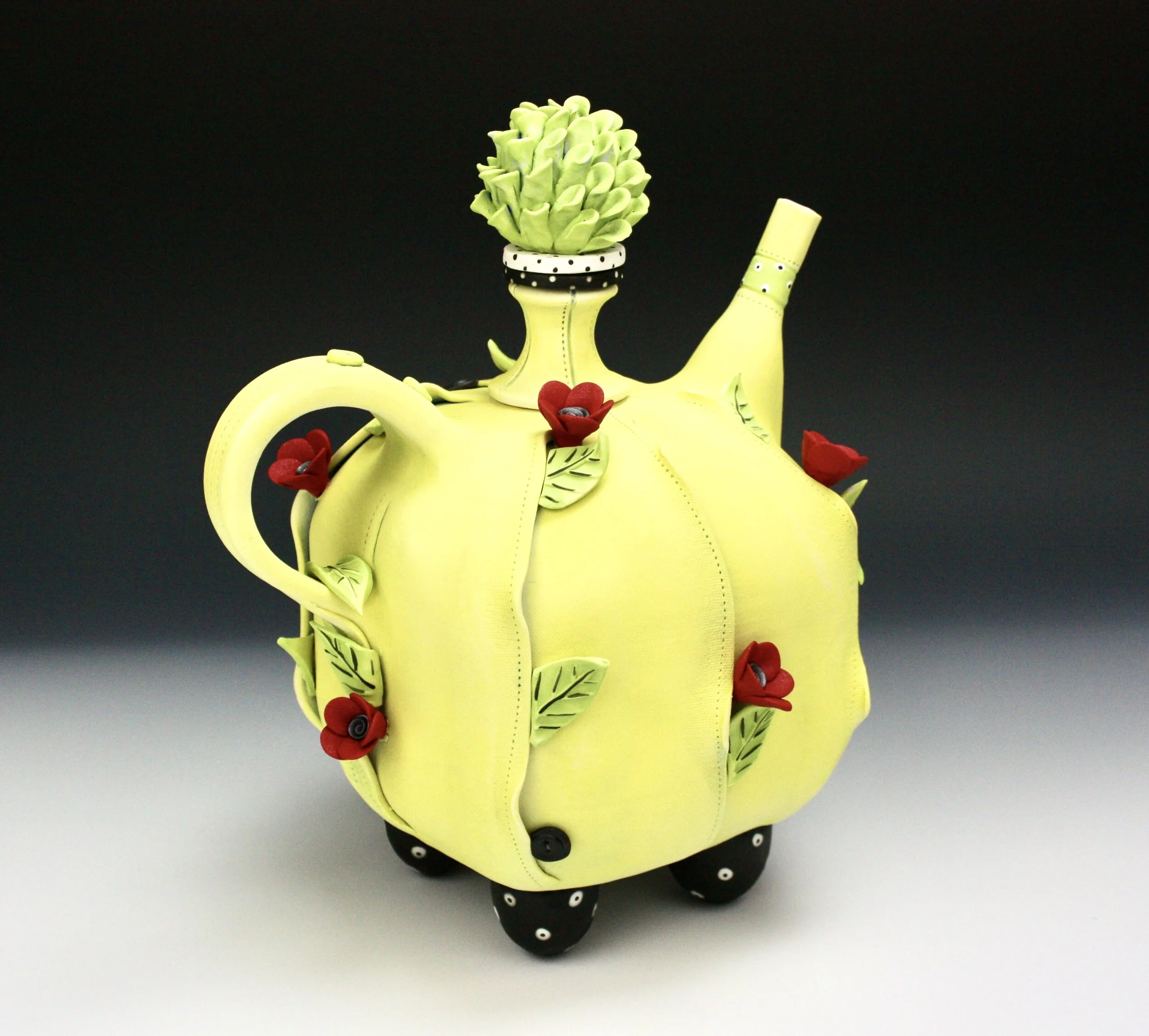 The past is with me every day. For several years I’ve focused on the teapot form, a humble domestic object, symbol of comfort and repose, rejuvenation and vitality. Teapots require handles, lids and spouts, but other than that, anything goes. I love to piece together these components, looking for the unexpected in the ordinary. If the pieces I make happen to resemble cushions or garments, I think you will understand why.